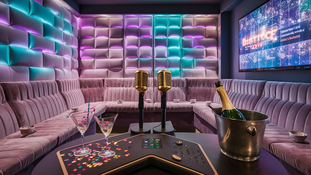 The best karaoke birthday bashes need some key room traits. Look for private rooms about 300 square feet big, good for 10-15 people. Must-have tech stuff includes top sound systems and new touchscreen setups with a big song list.