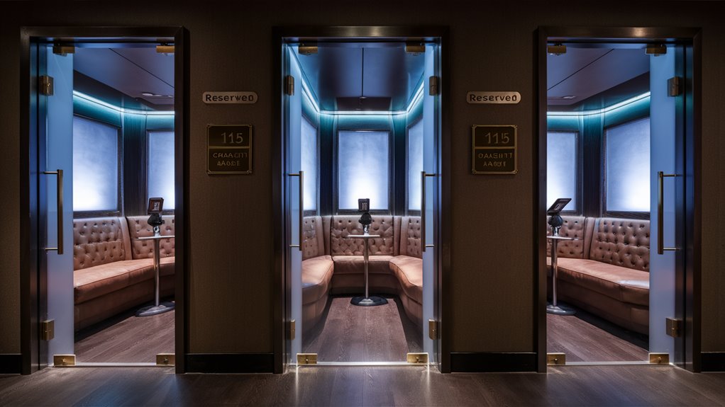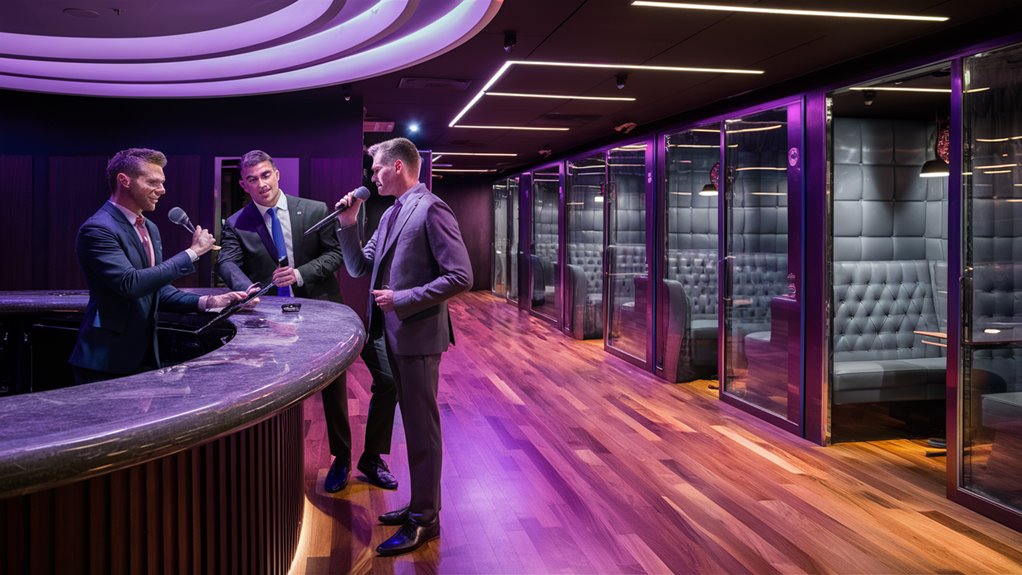 We start with sound-proof private rooms that fit your group size. Top sound gear is a must, making sure everyone hears well and everything runs smooth. Look for places with HD screens, new songs, and easy control setups.