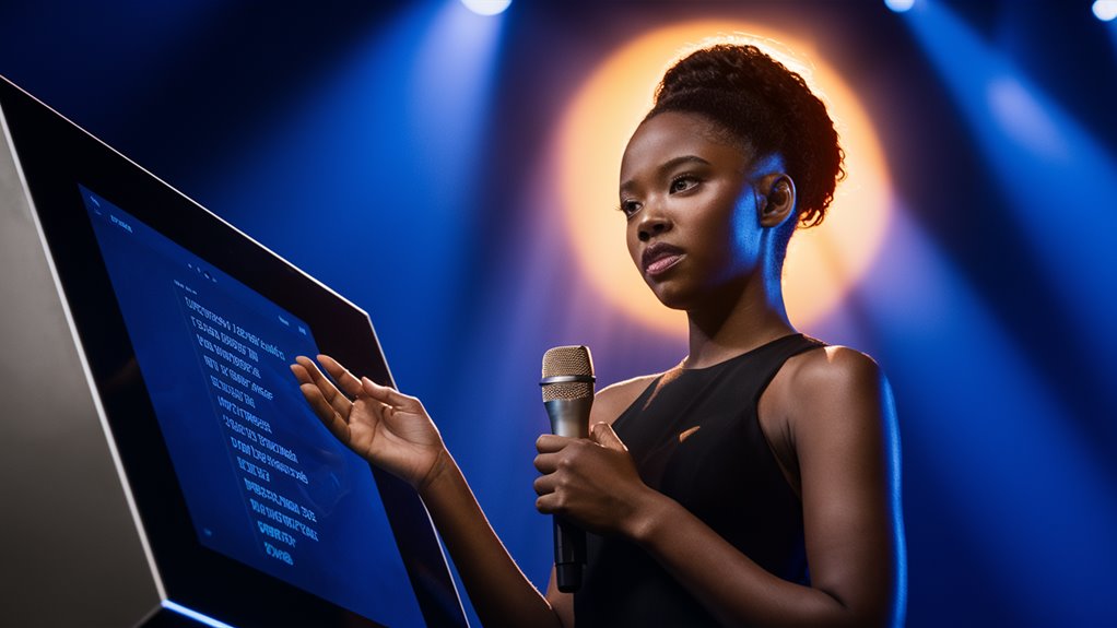 Moving on stage needs clear actions – move forward strongly for big parts and sway softly for slow parts. This keeps people watching and shows you know your stuff.