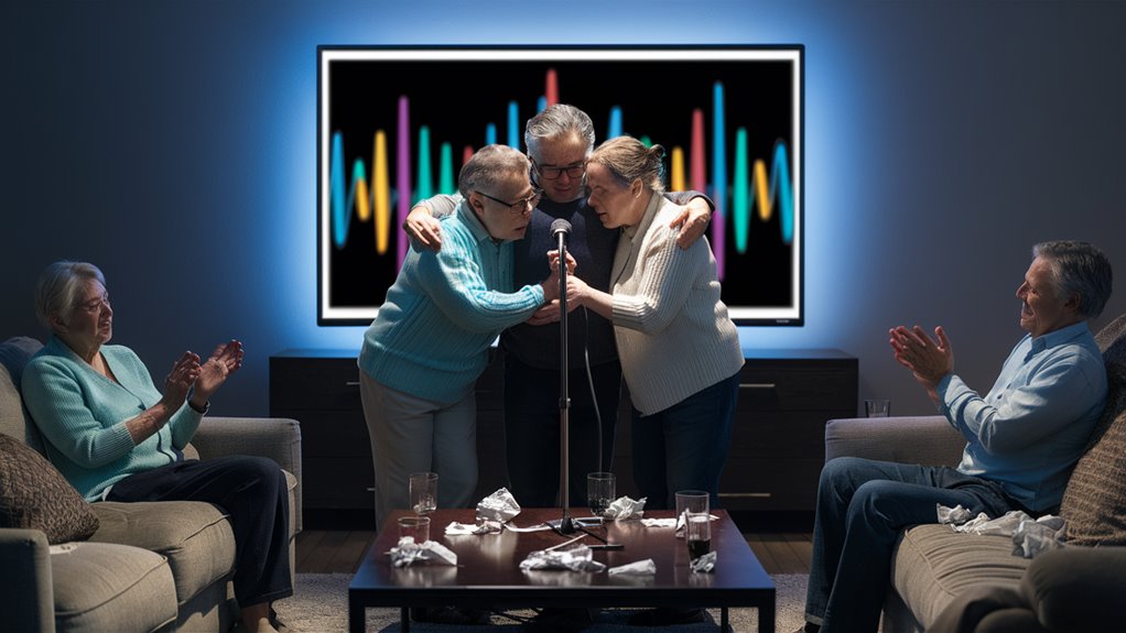 “YMCA” and “We Will Rock You” have easy words and catchy moves, ideal for all ages. “Twist and Shout” makes folks dance, while “Hey Jude” ends with “na na na,” making a big impact. These karaoke hits fit many singing styles.