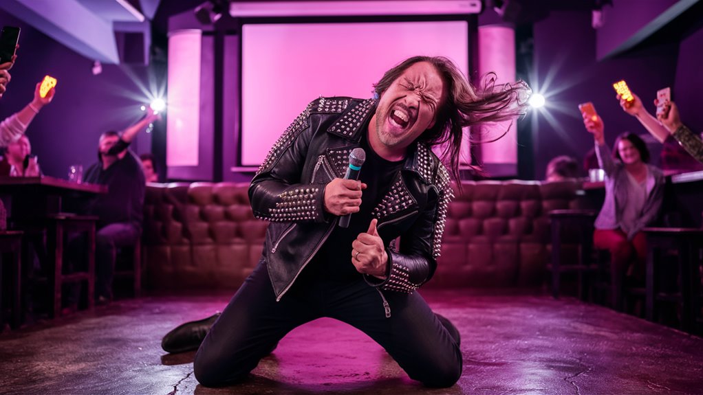 Bonnie Tyler’s “Total Eclipse of the Heart” is the top pick for drama on the karaoke stage. Hit the famous “turn around” parts and use big arm moves for the best show. Meat Loaf’s “I’d Do Anything for Love” gives you eight minutes of big song drama, great for those who love a rock show feel.